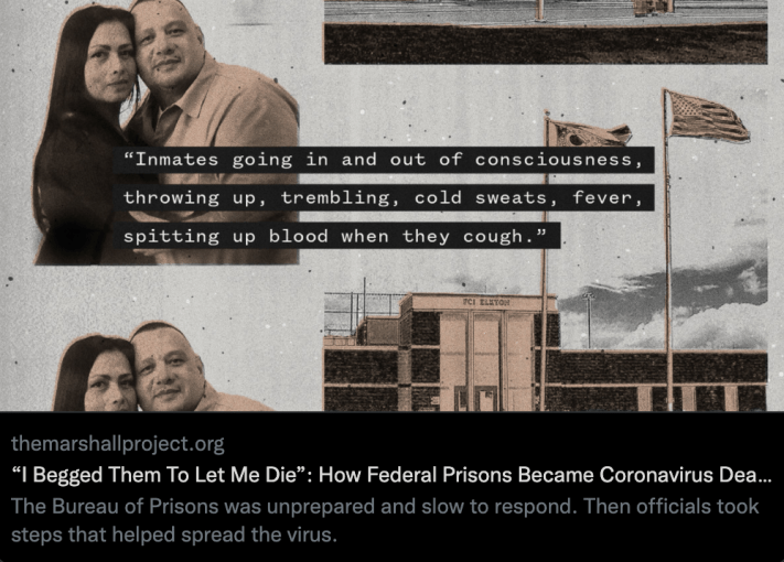 VICE/The Marshall Project: ‘I Begged Them To Let Me Die’: How Federal Prisons Became Coronavirus Death Traps